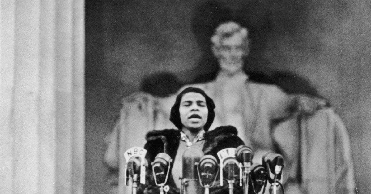 1939 Civil Rights: After contralto, Marian Anderson is denied singing to an integrated audience in Constitution Hall; she performs to a crowd of 75,000 on the steps of the Lincoln Memorial.