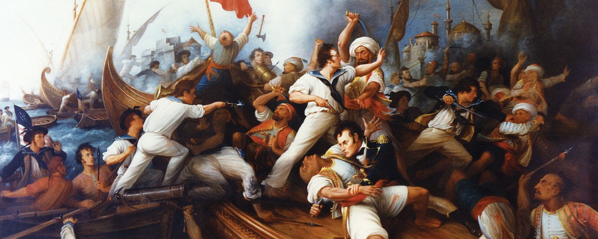 1804 | Barbary Wars: Stephen Decatur raids Tripoli Harbor, counterattacking Islamic pirates and recapturing the U.S.S. Philadelphia. Admiral Horatio Nelson famously called it “the most bold and daring act of the age.”
