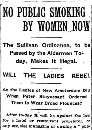 1908 | Civil Rights: NYC passes a ban on women smoking in public.