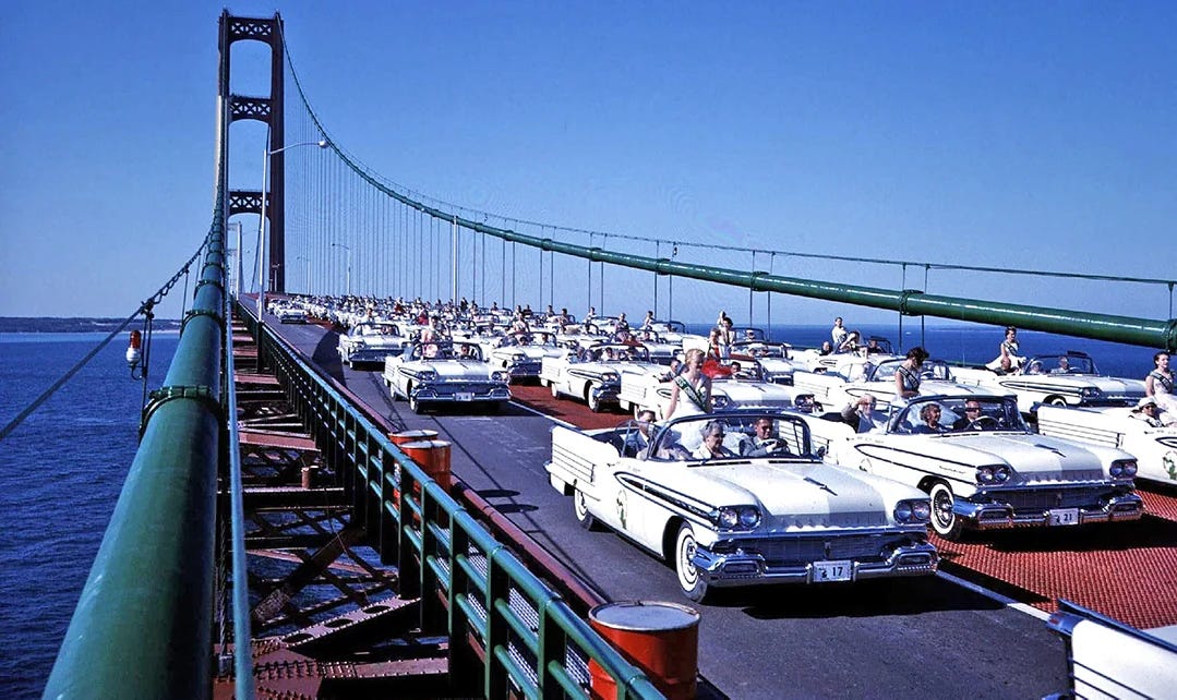 1958 | Mackinac Straits Bridge, Michigan, opened.