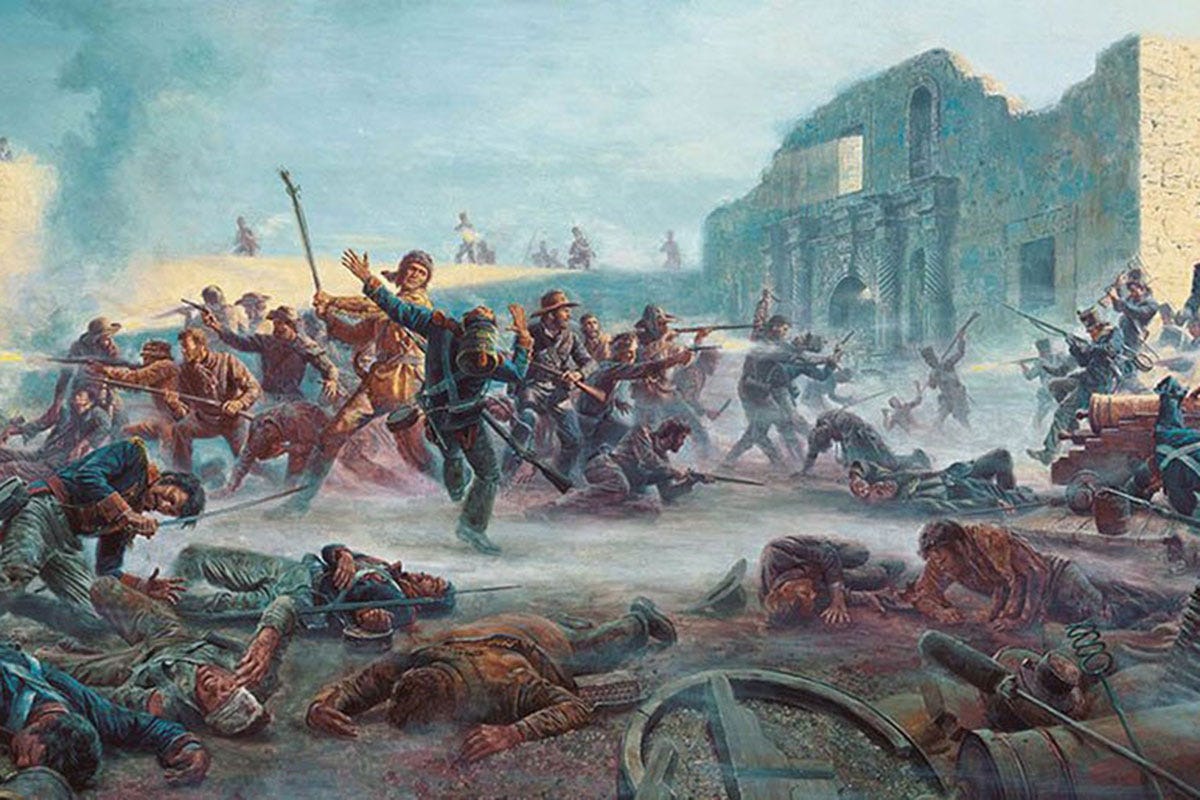1836 | Texas lost the Battle of the Alamo, and Davy Crockett, Jim Bowie, and William Travis are among the dead.